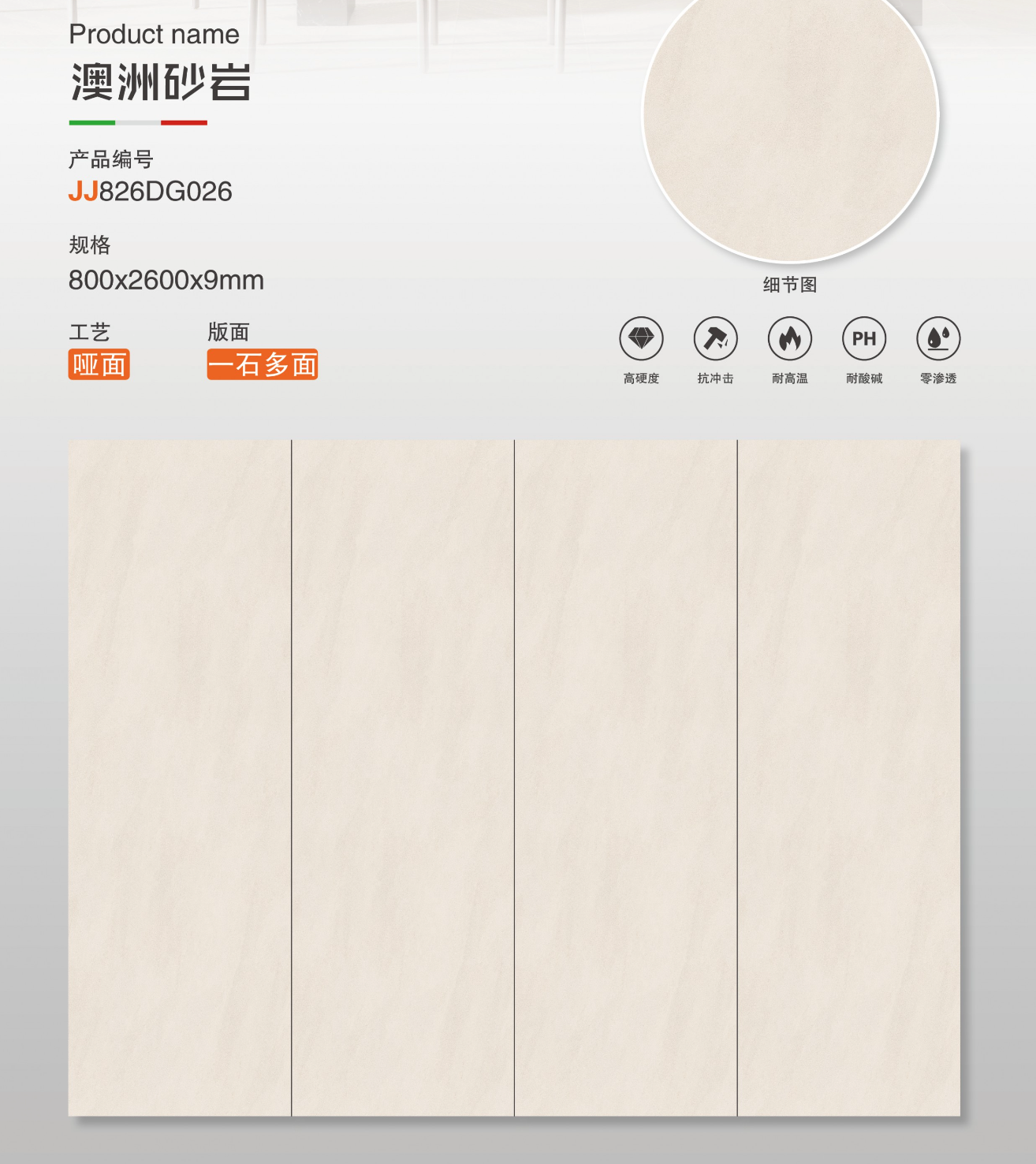澳洲砂岩 啞面 800x2600mm 岩板 JJ826DG026