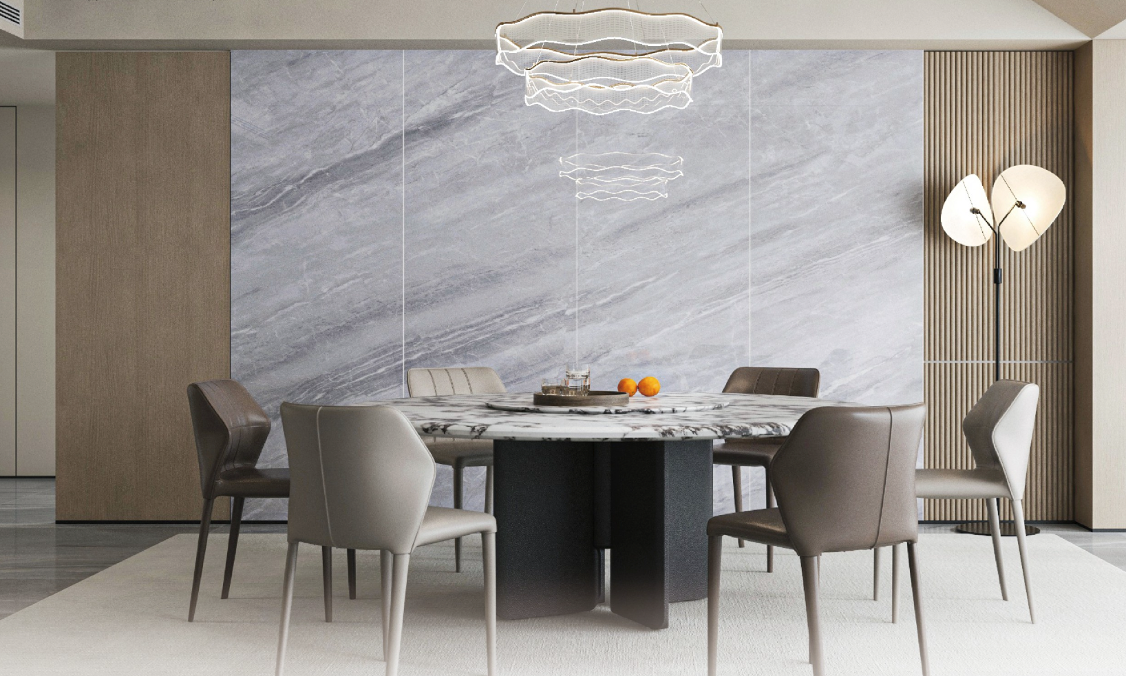 岩板是一種新型的人造石材,主要由非常純正礦物質白泥末在高壓下燒結而成 比起瓷磚更加具有高硬度、耐磨、耐高溫、耐腐蝕、防水、防污、防火等優點,並且可以切割成各種形狀和規格,廣泛應用於室內外裝修,如檯面、牆面、地面、傢俱等。