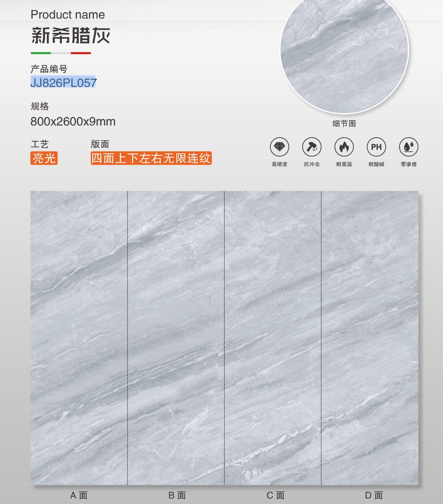 新希臘灰 亮面 800x2600mm 岩板 JJ826PL057