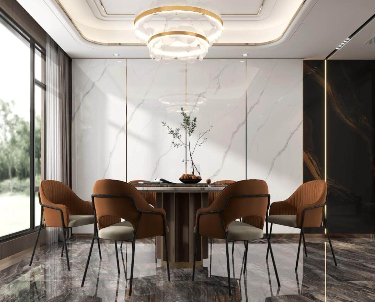 岩板是一種新型的人造石材,主要由非常純正礦物質白泥末在高壓下燒結而成 比起瓷磚更加具有高硬度、耐磨、耐高溫、耐腐蝕、防水、防污、防火等優點,並且可以切割成各種形狀和規格,廣泛應用於室內外裝修,如檯面、牆面、地面、傢俱等。