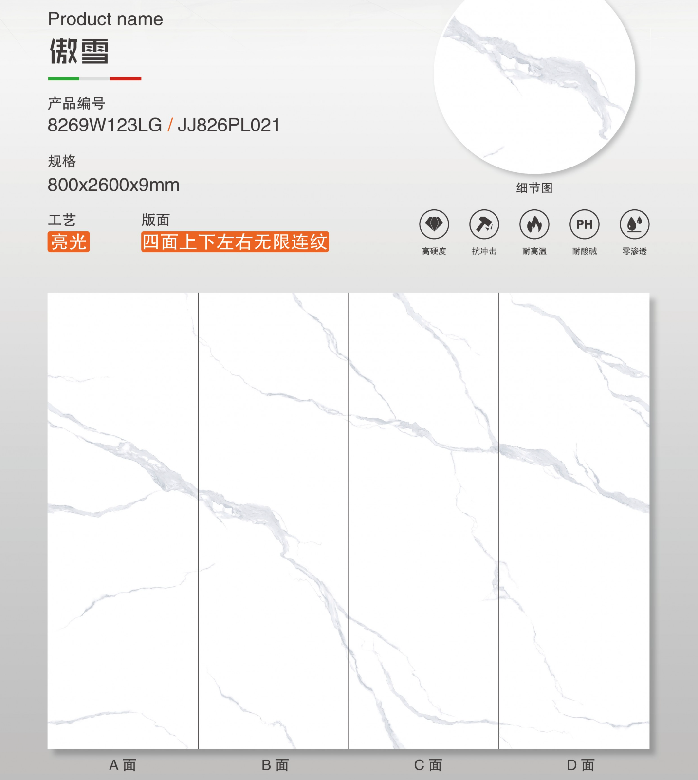 傲雪 亮面 800x2600mm 岩板 8269W123LG/JJ826PL021
