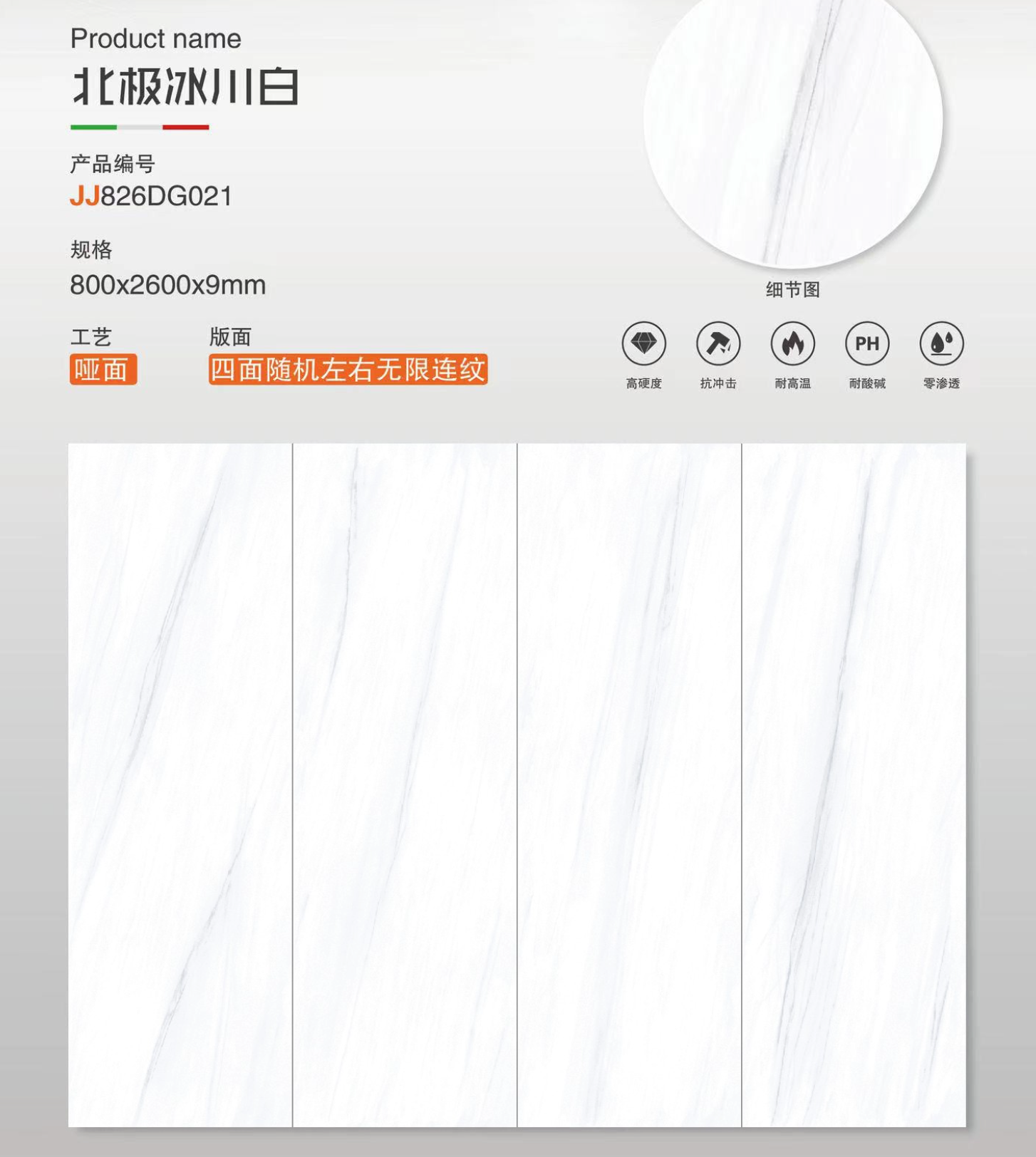 北極冰川白 啞面 800x2600mm 岩板 JJ826DG021