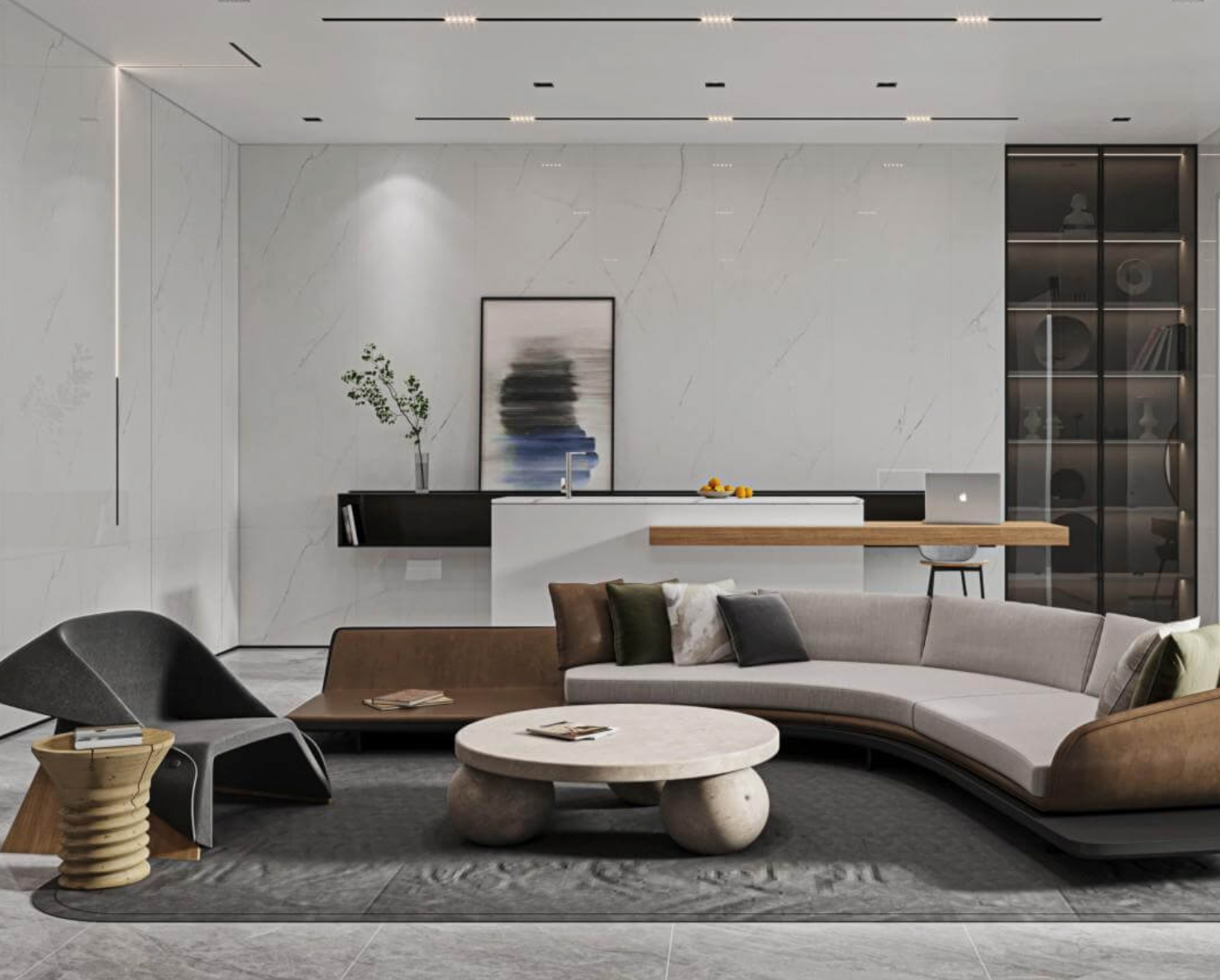 岩板是一種新型的人造石材,主要由非常純正礦物質白泥末在高壓下燒結而成。 比起瓷磚更加具有高硬度、耐磨、耐高溫、耐腐蝕、防水、防污、防火等優點,並且可以切割成各種形狀和規格,廣泛應用於室內外裝修,如檯面、牆面、地面、傢俱等。