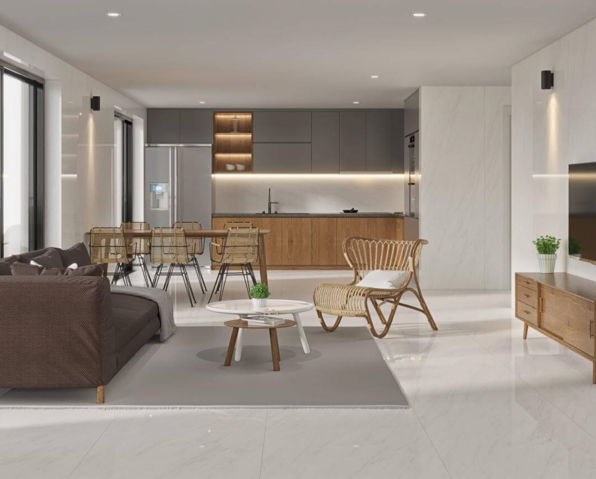 岩板是一種新型的人造石材,主要由非常純正礦物質白泥末在高壓下燒結而成 比起瓷磚更加具有高硬度、耐磨、耐高溫、耐腐蝕、防水、防污、防火等優點,並且可以切割成各種形狀和規格,廣泛應用於室內外裝修,如檯面、牆面、地面、傢俱等。
