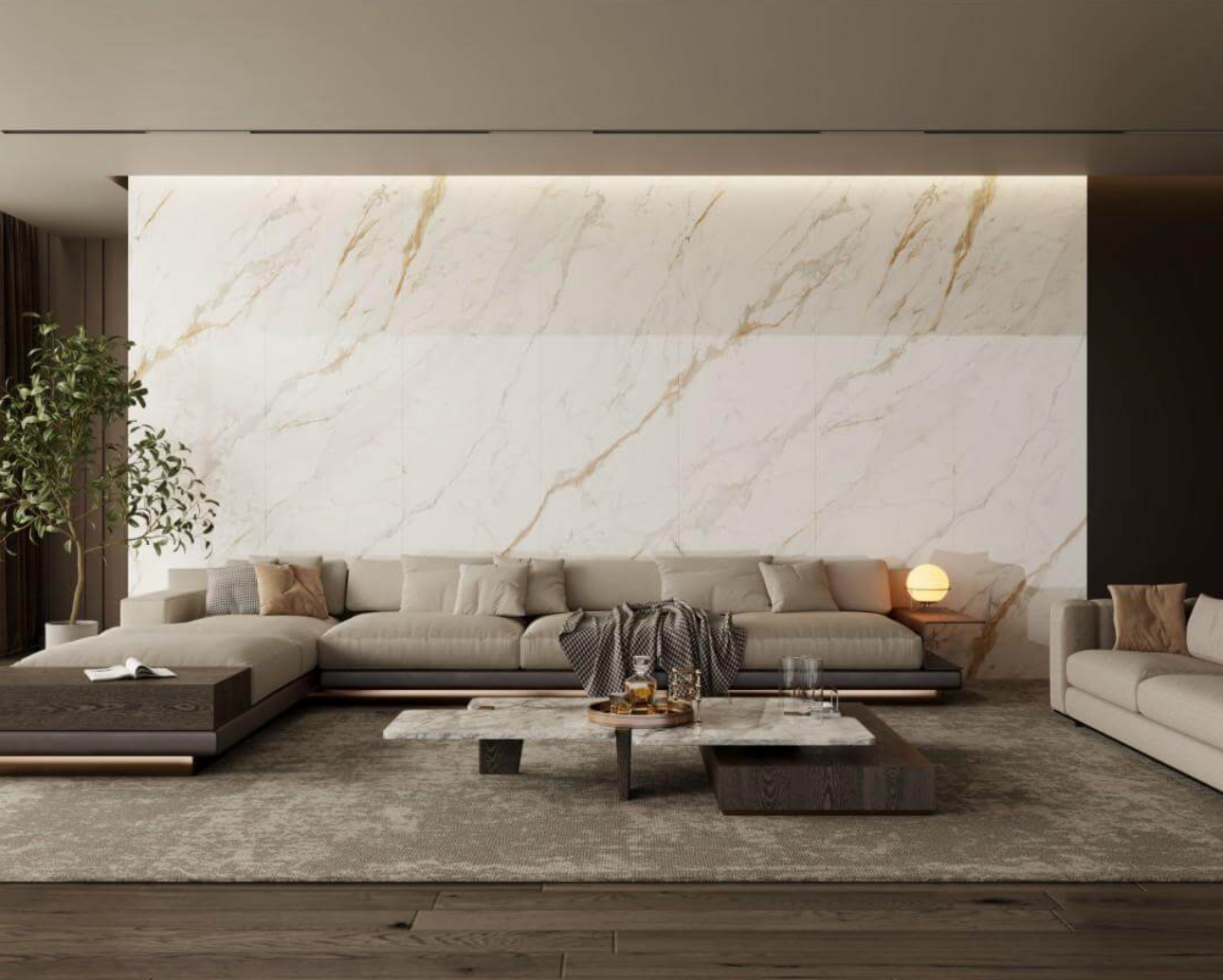 岩板是一種新型的人造石材,主要由非常純正礦物質白泥末在高壓下燒結而成。 比起瓷磚更加具有高硬度、耐磨、耐高溫、耐腐蝕、防水、防污、防火等優點,並且可以切割成各種形狀和規格,廣泛應用於室內外裝修,如檯面、牆面、地面、傢俱等。