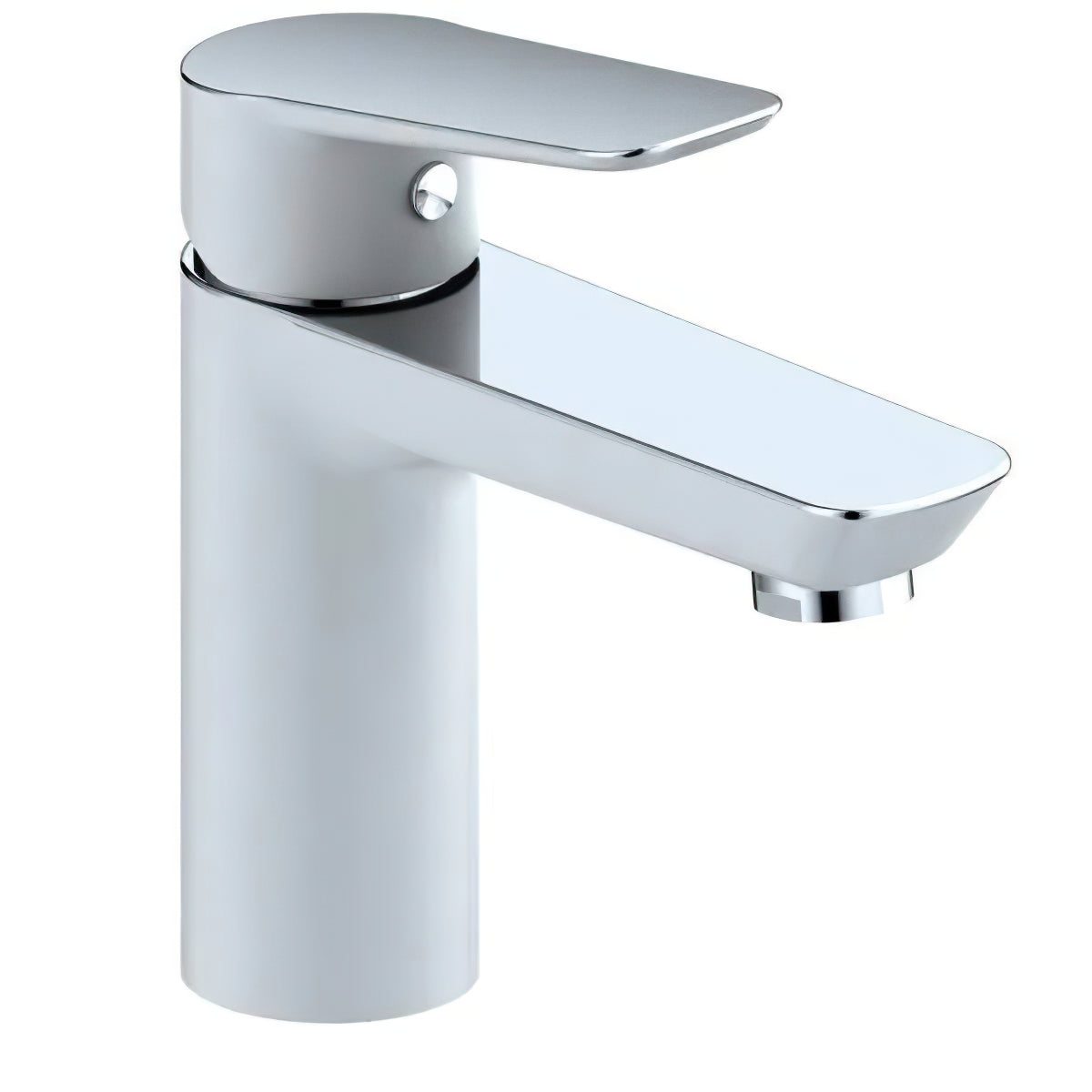 花灑龍頭1593001027(Ø35) 產品規格 WASH BASIN MIXER 功能: 冷熱水 操作控制:單控制 顏色: 鉻+白