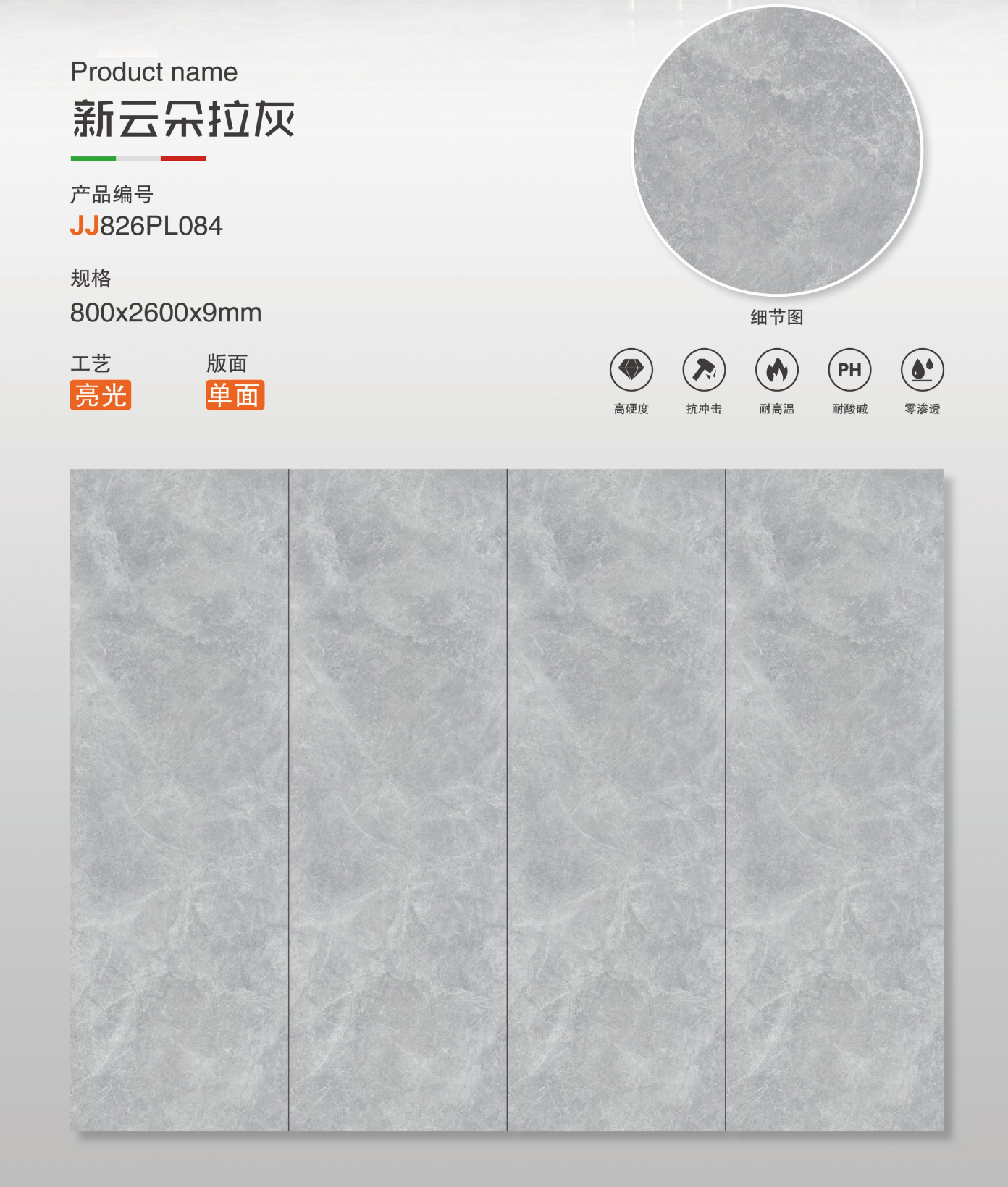 新雲朵拉灰 亮面 800x2600mm 岩板 JJ826PL084
